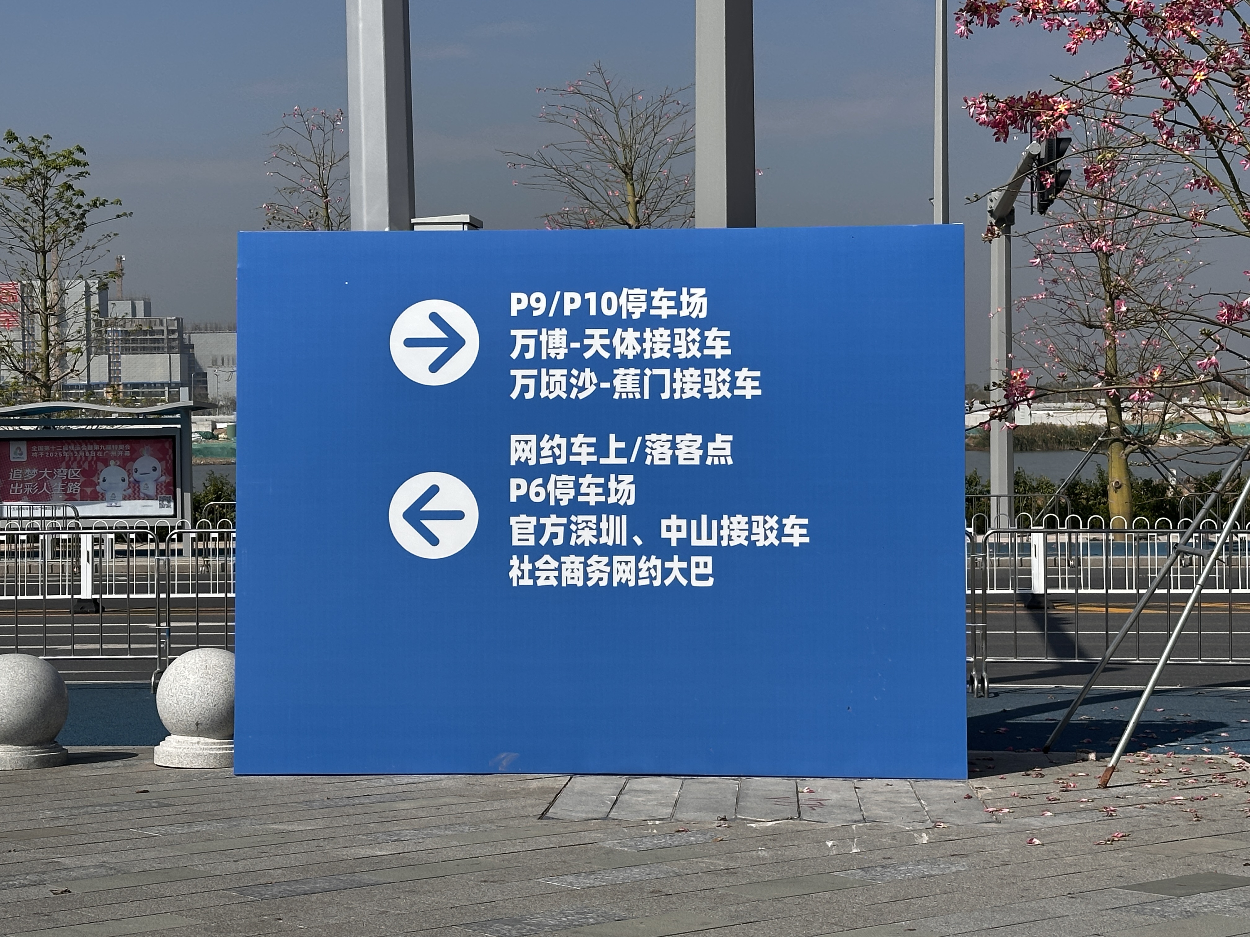 中山方向:自费搭乘跨市公交K981抵达横沥地铁站后,换乘地铁18号线至万顷沙站,再搭乘场馆接驳车。
