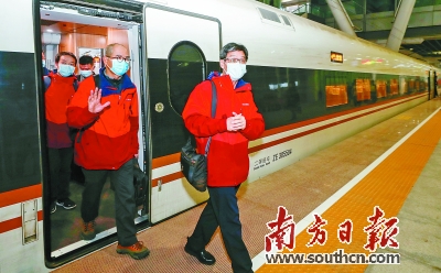1月30日晚,张忠德等中医专家乘坐高铁抵达广州。南方日报记者 李细华 徐昊 摄