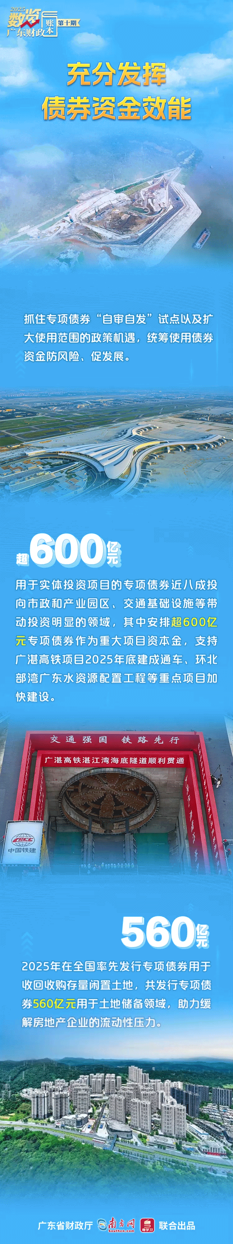 编者按:全省两会即将召开,南方网联合省财政厅特别推出《数览2025广东财政“账本”》系列报道,通过一组组跃然呈现的数据解码广东财政“账本”。围绕纵深推进粤港澳大湾区建设、支持“百县千镇万村高质量发展工程”促进区域协调发展、激发市场活力等10个关键方面,回顾2025年广东财政的关键举措与扎实成效。1月25日推出系列报道第十篇《充分发挥债券资金效能》。