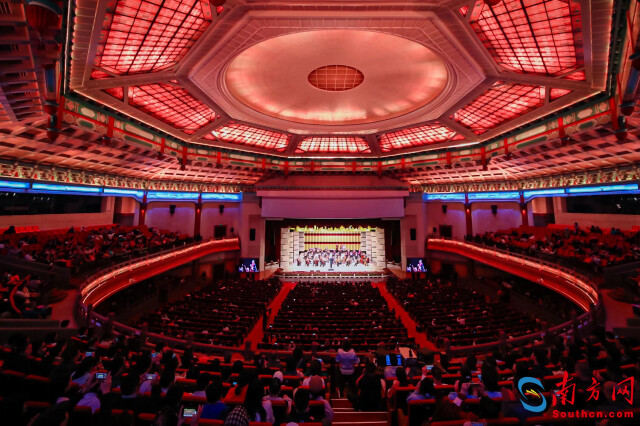 在中山纪念堂聆听新年音乐会,已成为粤港澳大湾区许多家庭岁末迎新的文化仪式。临近零点,现场迎来最激动人心的倒数环节。璀璨激光在穹顶投映出倒计时数字,两侧光束勾勒出寓意吉祥的骏马图案与新年的祝福。在指挥棒的引领下,全场数千观众齐声高喊“10、9、8……”。零点钟声敲响时,欢呼声与乐声激荡交融,将气氛推向高潮。有观众感叹:“与这么多人一起在音乐中跨年,震撼与感动无以言表,这就是新年应有的仪式感。”