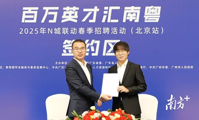 4月19日,在“百万英才汇南粤”2025年N城联动春季招聘活动(北京站)中,来自北京大学新能源材料专业的罗恒与鹿山新材一拍即合,当场签约。