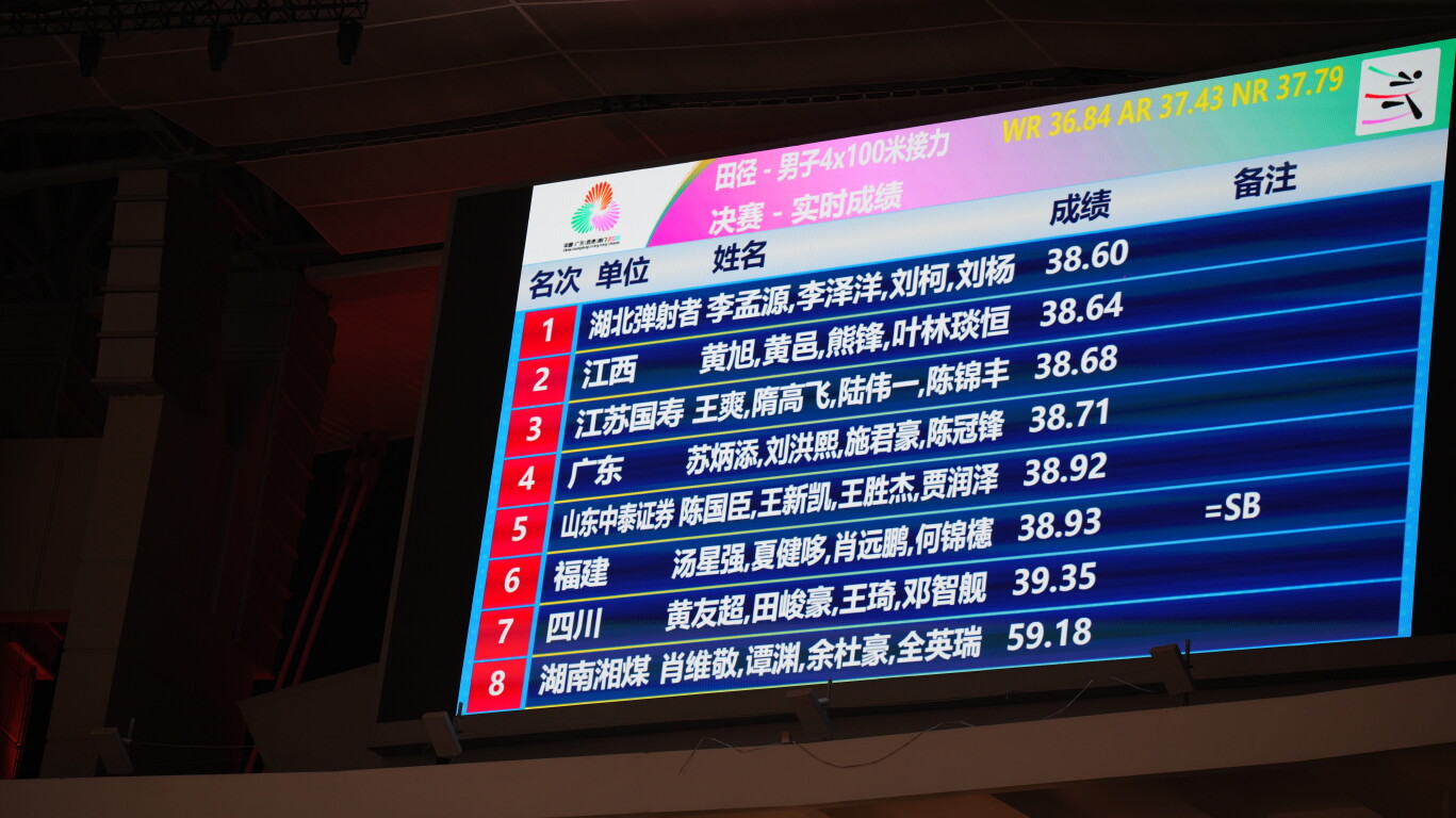 经过激烈角逐,广东队最终以38秒71的成绩获得第四名。