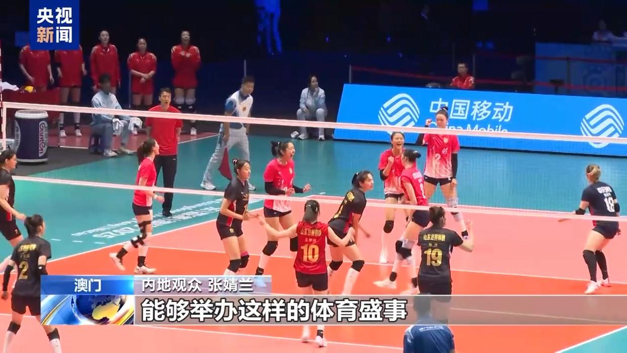 内地观众 张婧兰:我们一家人是从珠海到澳门来看全运会的女排比赛,正好全运会在大湾区举办,也是一个非常好的机会,我们过来也非常的方便,主要是也想到现场来感受一下全运会的氛围。这个女排的比赛也非常的精彩,也希望以后,在大湾区会有更多的机会,能够举办这样的体育盛事。