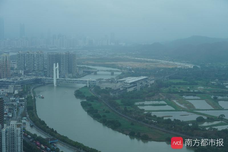 4月15日,南都粤港澳大湾区报道组来到位于福田保税区的合作区展示交流中心。从中心俯瞰远处,依次是福田口岸和皇岗口岸,以及建设中的河套A区。