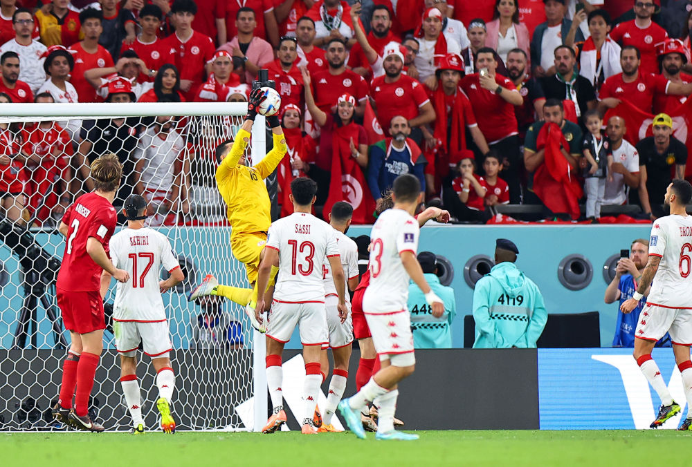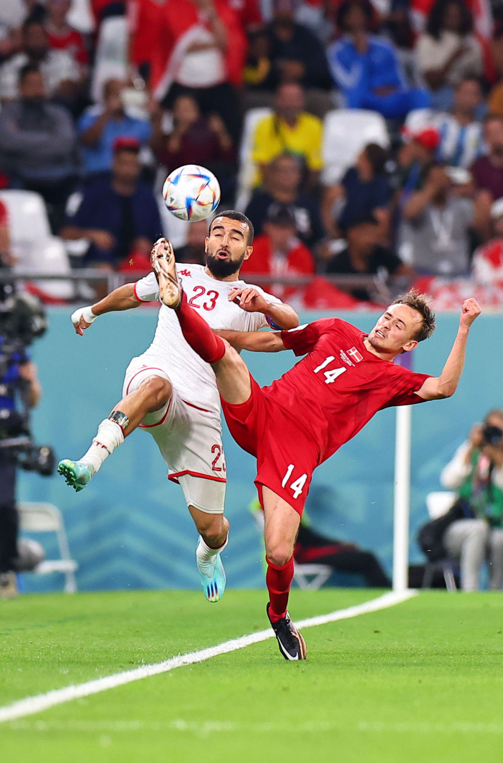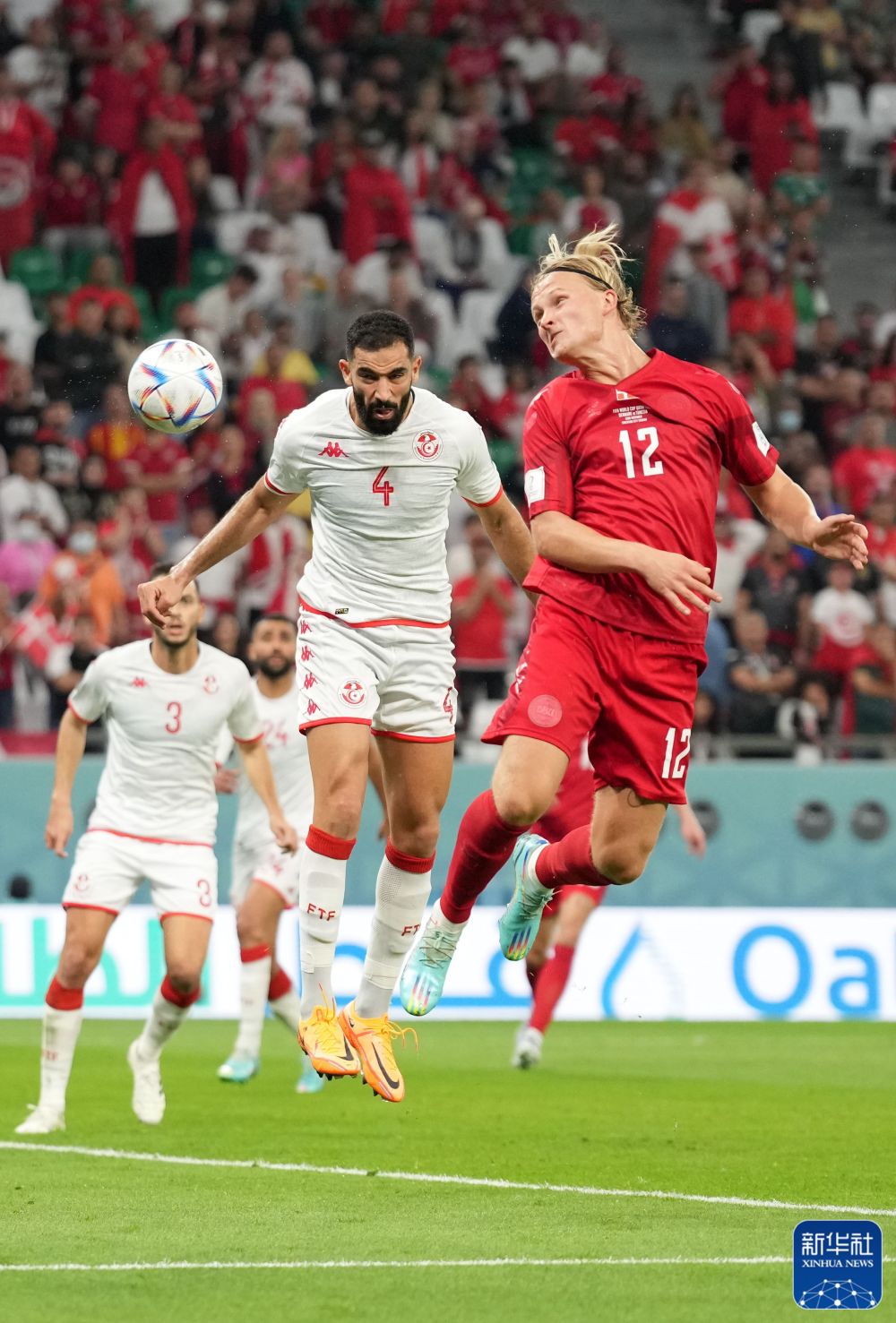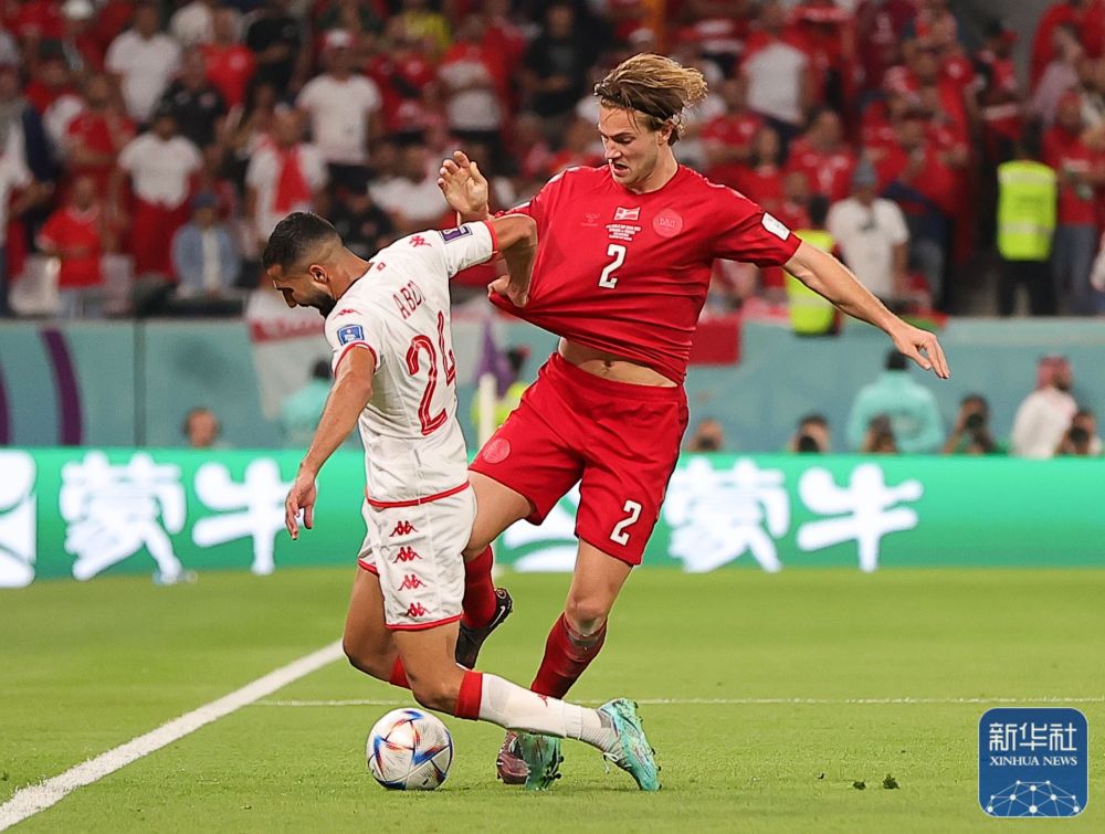 11月22日,在卡塔尔赖扬教育城球场进行的2022卡塔尔世界杯足球赛D组比赛中,丹麦队以0比0战平突尼斯队。