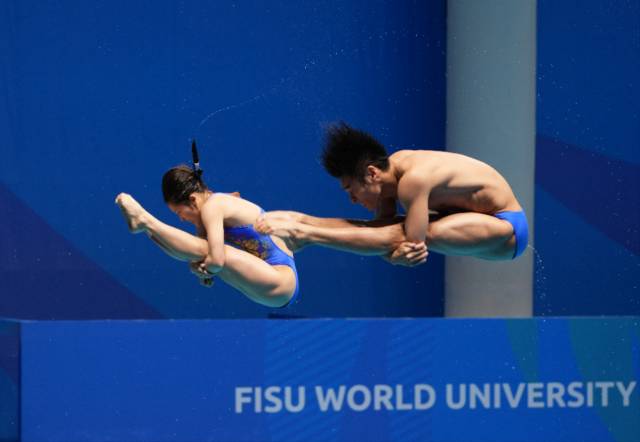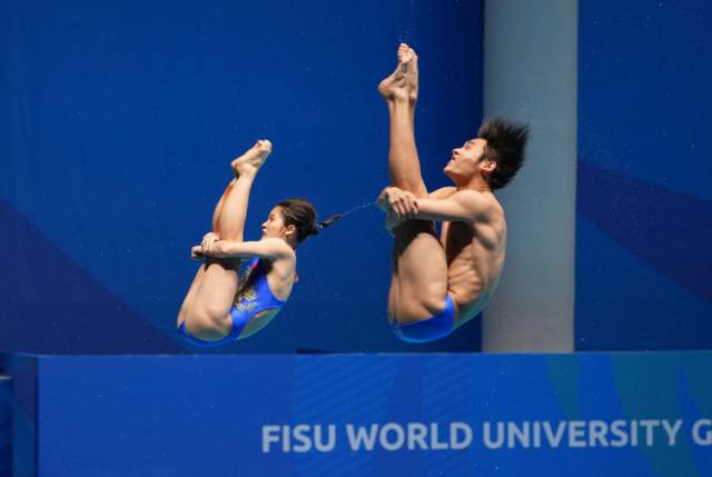 广东选手王伟莹两个小时连夺两枚金牌。8月3日,成都大运会的跳水项目在简阳文体中心游泳馆继续进行。在拿下女子跳台冠军之后,王伟莹马不停蹄与搭档杨凌共同出战混双3米跳板决赛。
