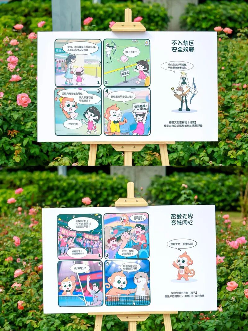 福田区依托新时代文明实践阵地,全区联动球队举办了45场“文明观赛在福田”活动,线下惠及超百万人次;设计推出5幅文明观赛四格漫画与8条标语,通过103个实践阵地广泛宣传;组建起“志愿天团”,保障赛事秩序,全民迎运氛围热烈。