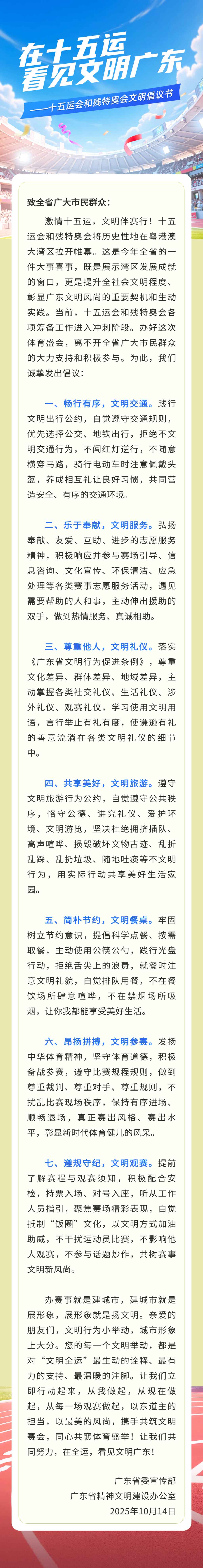 在十五运,看见文明广东——十五运会和残特奥会文明倡议书