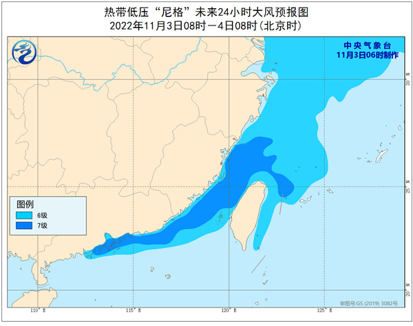 中央气象台预计,受“尼格”和冷空气共同影响,今天台湾海峡、南海北部、东海南部,以及福建沿海、台湾岛沿海、广东中东部沿海将有6-7级大风,阵风可达8-9级。广东中部沿海、台湾岛东北部的部分地区将有大到暴雨。
