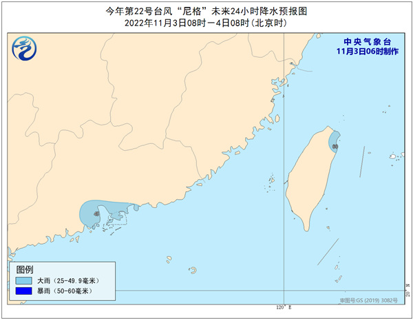 据中国天气网消息,今天(11月3日)4时50分前后,今年第22号台风“尼格”减弱后的热带低压在广东珠海香洲区登陆。受其和冷空气共同影响,广东中部沿海、台湾岛东北部的部分地区将有大到暴雨,福建沿海、台湾岛沿海、广东中东部沿海等海域有大风。