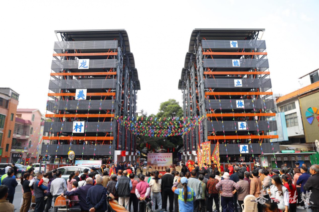 龙美村村民与住户齐聚一堂,为智能立体停车库的启动喝彩