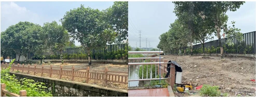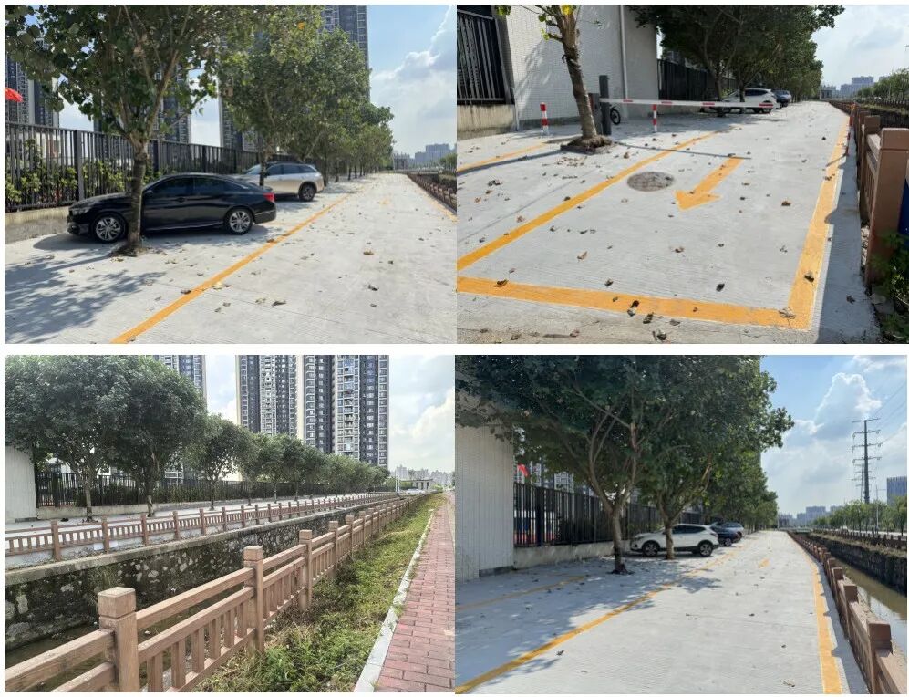 为高效推进改造,徐洁萍、黄俊杰、黄均伦积极协调花城街道和学校,成功对接花城街辖区爱心建筑企业,引入企业赞助模式,由企业全额出资用于工程实施。经过实地勘察和反复讨论,最终确定“清理杂草+基础硬化+铺设水泥+划定停车位及人行标识”四步走的改造方案,改造工作随即启动。