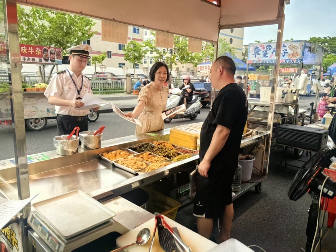 同时,综合执法队员和城乡管理办工作人员也向商户们耐心讲解城市管理规定,并逐户发放倡议书,倡议书中明确写道:“各摊位应自觉履行市容环境卫生责任,在收摊前自行清理地面油污,确保环境卫生整洁。”