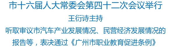 会议表决通过《广州市职业教育促进条例》;审议了《广州市燃气管理条例(草案二次审议稿)》《广州市南沙人才发展促进条例(草案)》,提出修改意见提请以后的常委会会议继续审议。