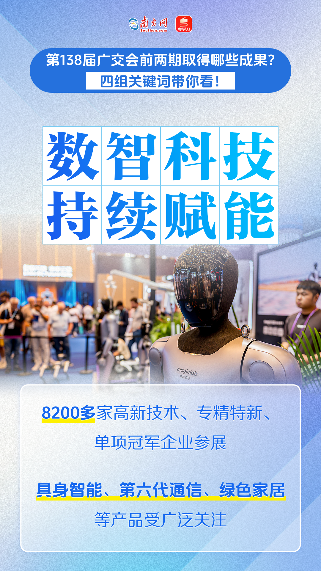 三是“数智科技”持续赋能。8200多家高新技术、专精特新、单项冠军企业参展,具身智能、第六代通信、绿色家居等产品受到广泛关注。举办472场新品发布、6场“贸易之桥”供采对接、2期外贸优品拓内销活动,打造“首发经济”“内外贸一体化”新场景,助力企业精准拓市场。