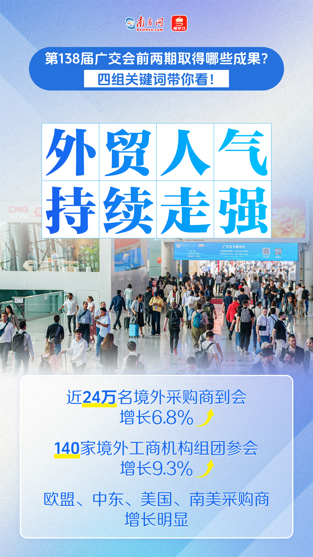 “第138届广交会近期正在广州举办,吸引了全球客商前来参展洽谈,也受到了很多网民的关注,‘活力广交’‘暖意广交’‘新意广交’等热词纷纷刷屏。”何咏前表示,从现场调研和展客商反馈来看,目前,第138届广交会主要有以下四个方面成果: