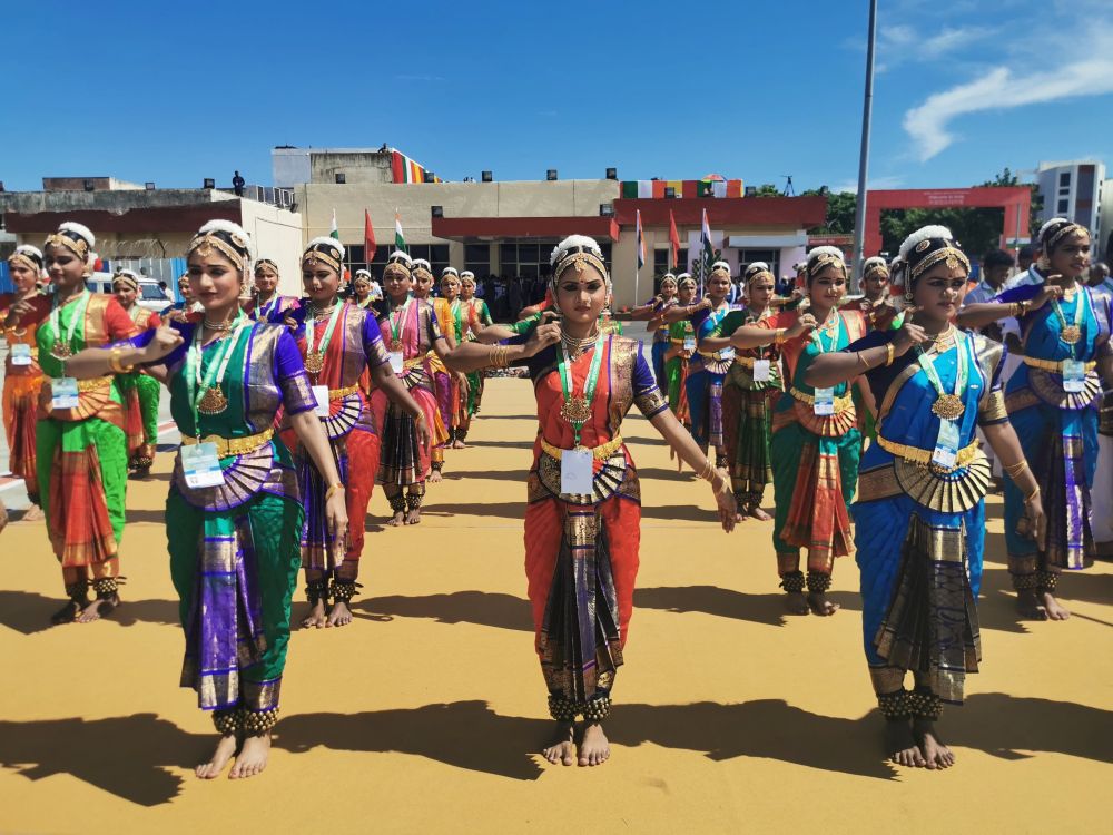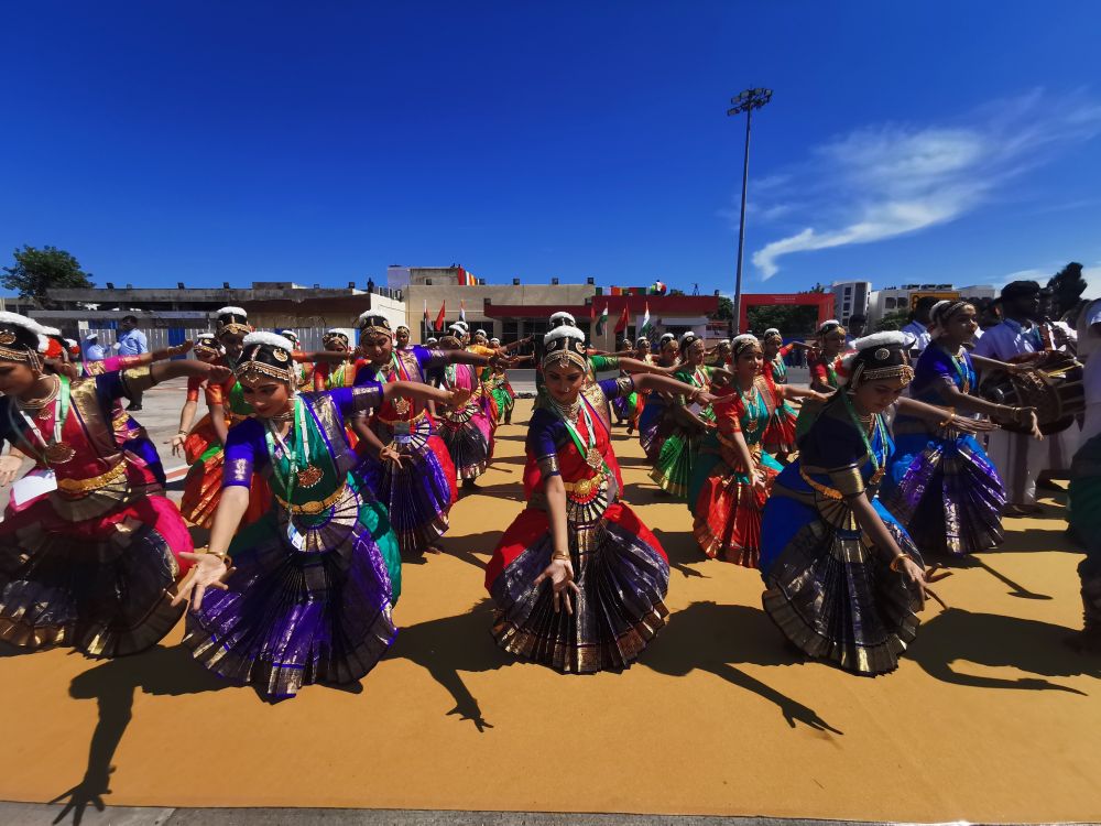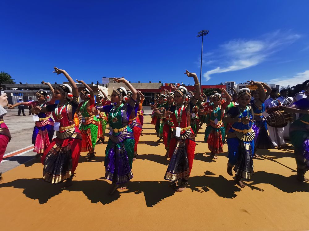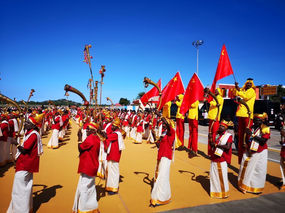 民众们载歌载舞,有人跳起婆罗多舞,有人踩高跷、划旱船,盛情欢迎习主席的到来。