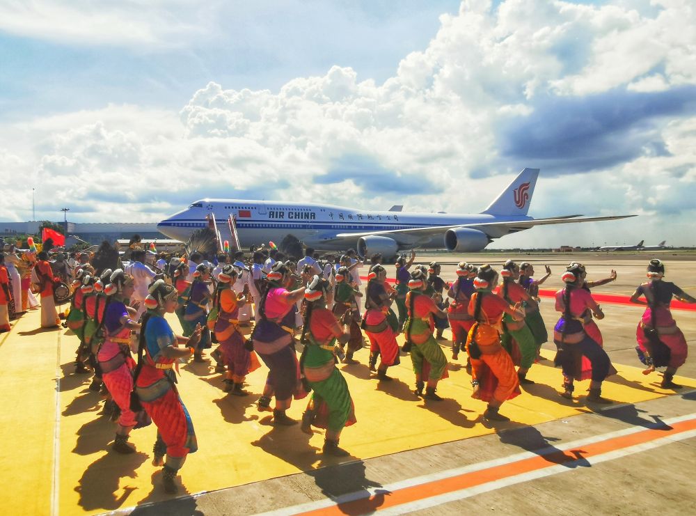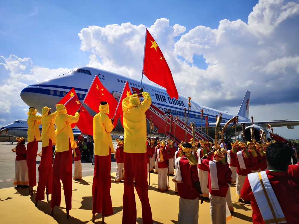 11日下午2时10分许,习主席乘坐的专机抵达金奈国际机场。