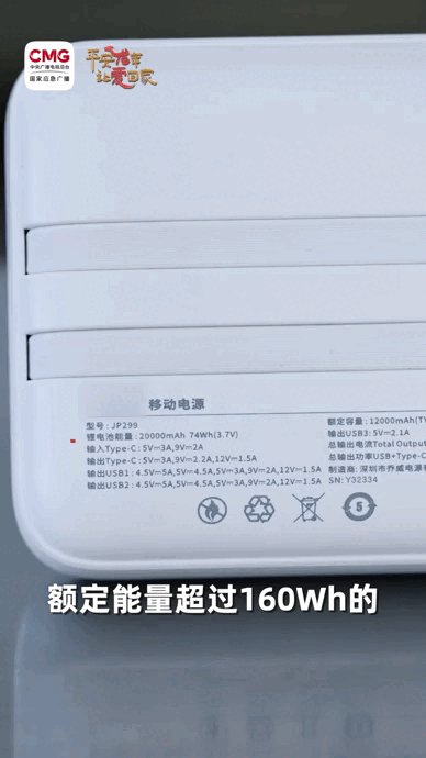 额定能量超过160Wh的锂电池、充电宝不可携带。