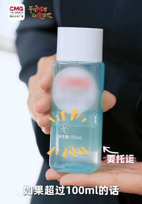 根据民航相关安全规定,旅客不得携带单体超过100毫升的液态物品乘机。