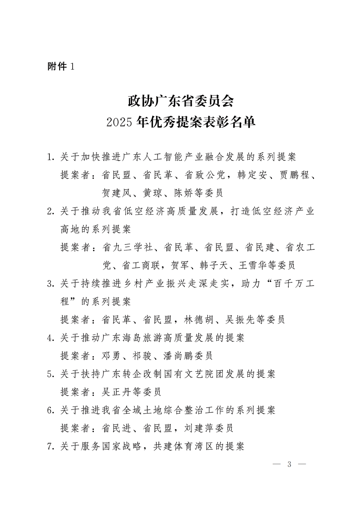 政协广东省委员会2025年优秀提案表彰名单: