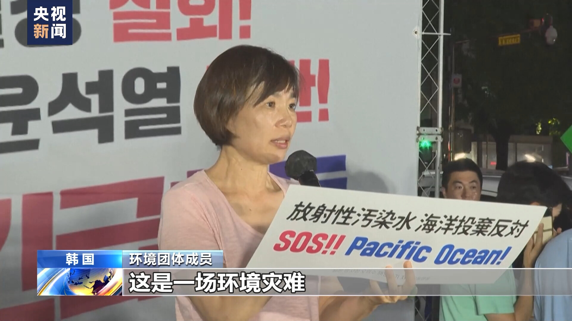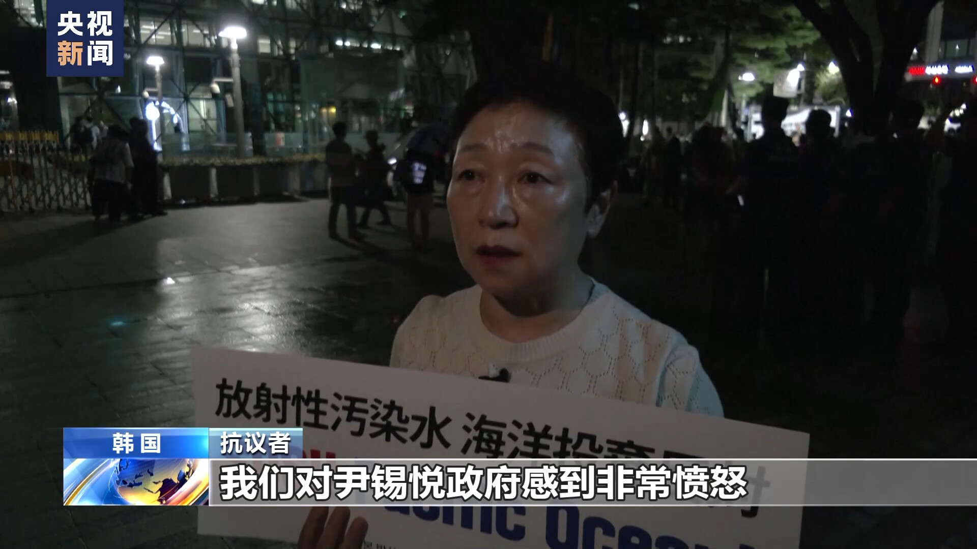 抗议者:我们对尹锡悦政府感到非常愤怒。海洋不是日本的财产,而是全人类的共同财产。我无法理解韩国政府为什么放任日本自行决定并推进排放核污染水,我无法接受。