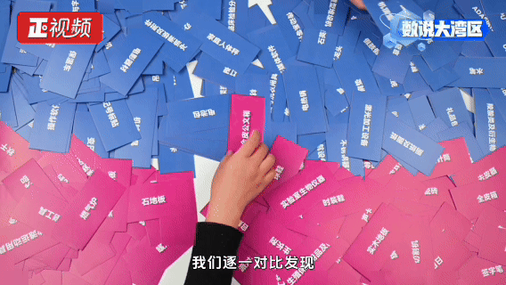 为了直观地展现差异,我们将两届共计2444种展品,化作实体卡片。蓝色卡片,代表本届广交会展品。红色卡片,代表2012年广交会展品。