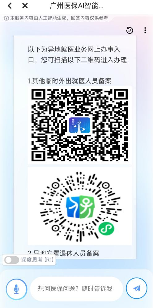 第三步:进入后可选择热门问题或在下方提问栏进行提问。如小林可提问:办理异地就医备案有哪些渠道?