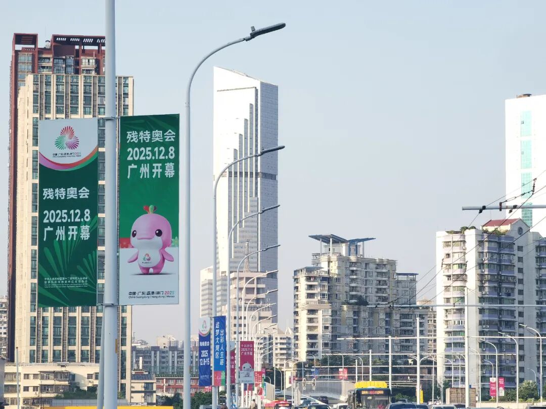 桥梁涂装也是本次提升的重点,四座跨江桥梁累计完成桥体涂装约3.22万平方米,使桥梁外观更加整洁美观。江湾大桥上,全运主题道旗沿江岸飘扬,与珠江波光相映生辉。