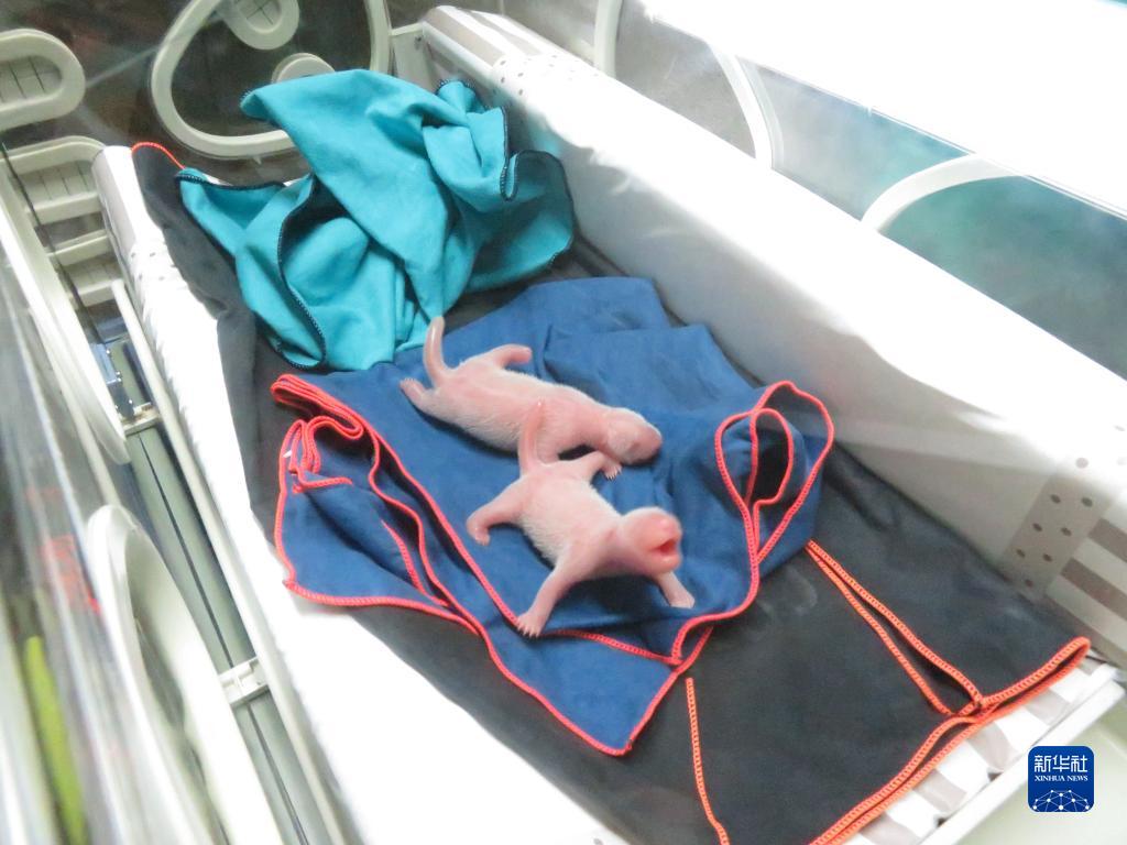 这是9月6日在西班牙马德里拍摄的刚刚出生的两只大熊猫幼崽。新华社发(马德里动物园水族馆供图)
