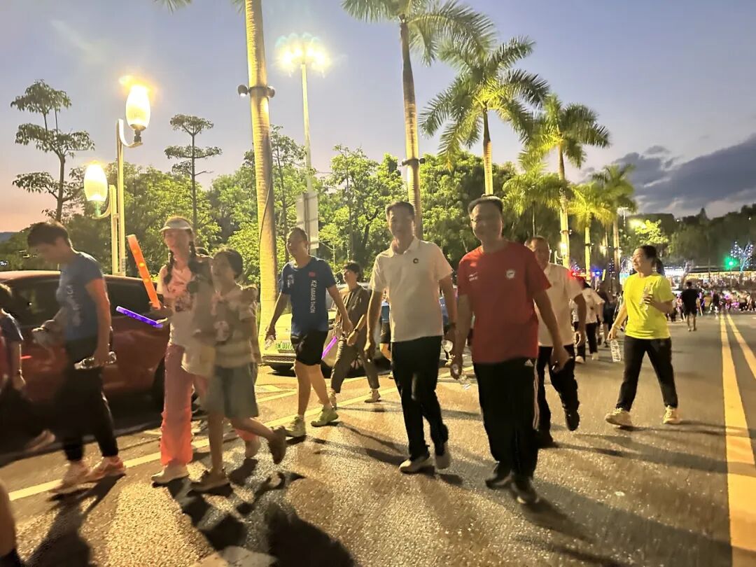 当晚七点半,一支徒步爱好者大队集结在云浮市文化馆门前广场。随着主持人的一声令下,昂首挺胸的他们坚定不移地朝着目的地前进,现场运动气氛活跃,激情澎湃。本次徒步活动路线从云浮市文化馆出发,途径南山公园、植物园等绿道路线,全程约8.8公里。