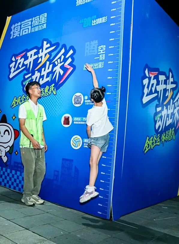 在“投出风采(篮球)”区域,市民全神贯注地瞄准篮筐,奋力投篮,每一次投进都会引发周围观众的欢呼喝彩;“脑动动出彩(足球)”挑战中,市民用绚丽的脚法演绎精准传球,在迷你绿茵场角逐“最佳射手”;“拳释新出彩(拳击)”更是点燃热血,市民挥拳出击,在力量释放中收获喝彩。完成挑战后,还能收集“乐小星出彩”积分印章,集满印章则可兑换精美小礼品,享受运动乐趣的同时还能收获惊喜,让参与感瞬间拉满。