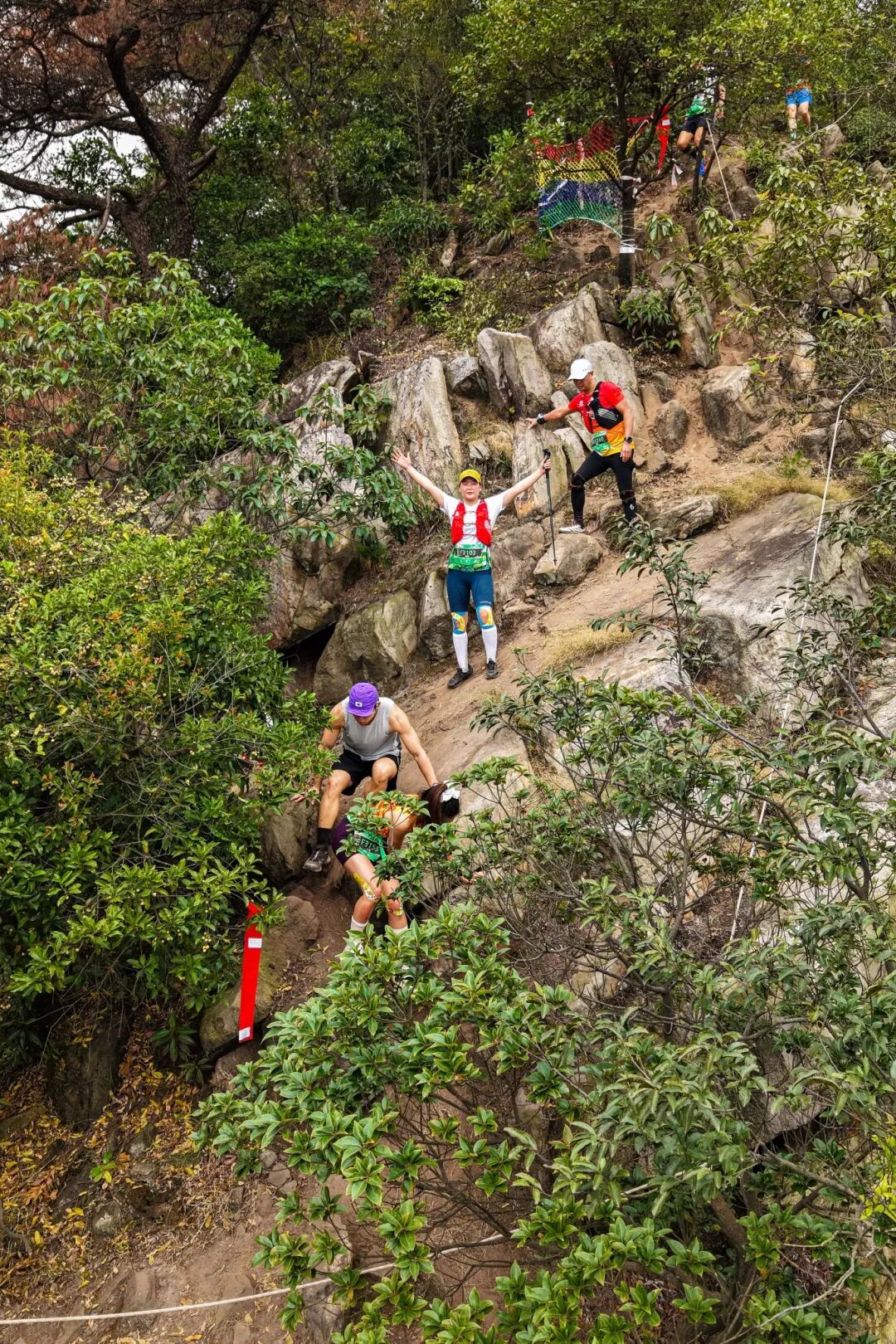 赛事以鼎湖文化广场为起终点,赛道横跨城市公路、自然村落与连绵山野,涵盖林道、石阶、溪流等多种地形。其中100公里组累计爬升高达5513米,沿途穿越羚羊峡古栈道、鼎湖山、黄金沟、九龙湖等标志性景观,串联成岭南地区极具特色与挑战的越野打卡路线。在环保方面,所有选手均自备垃圾袋,赛事期间产生的一次性垃圾将统一在补给点处理或随身带走,践行绿色环保理念。