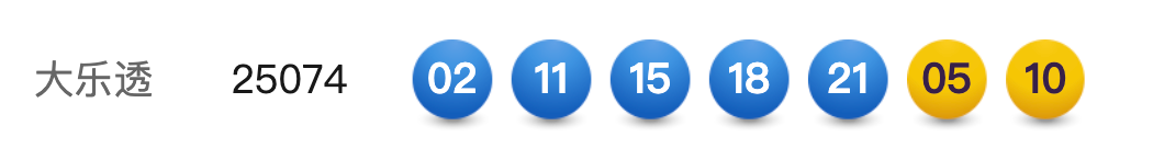 7月2日,超级大乐透第25074期开奖。前区开出号码02、11、15、18、21;后区开出号码05、10。本期全国销售3.04亿元,为国家筹集彩票公益金1.09亿元。