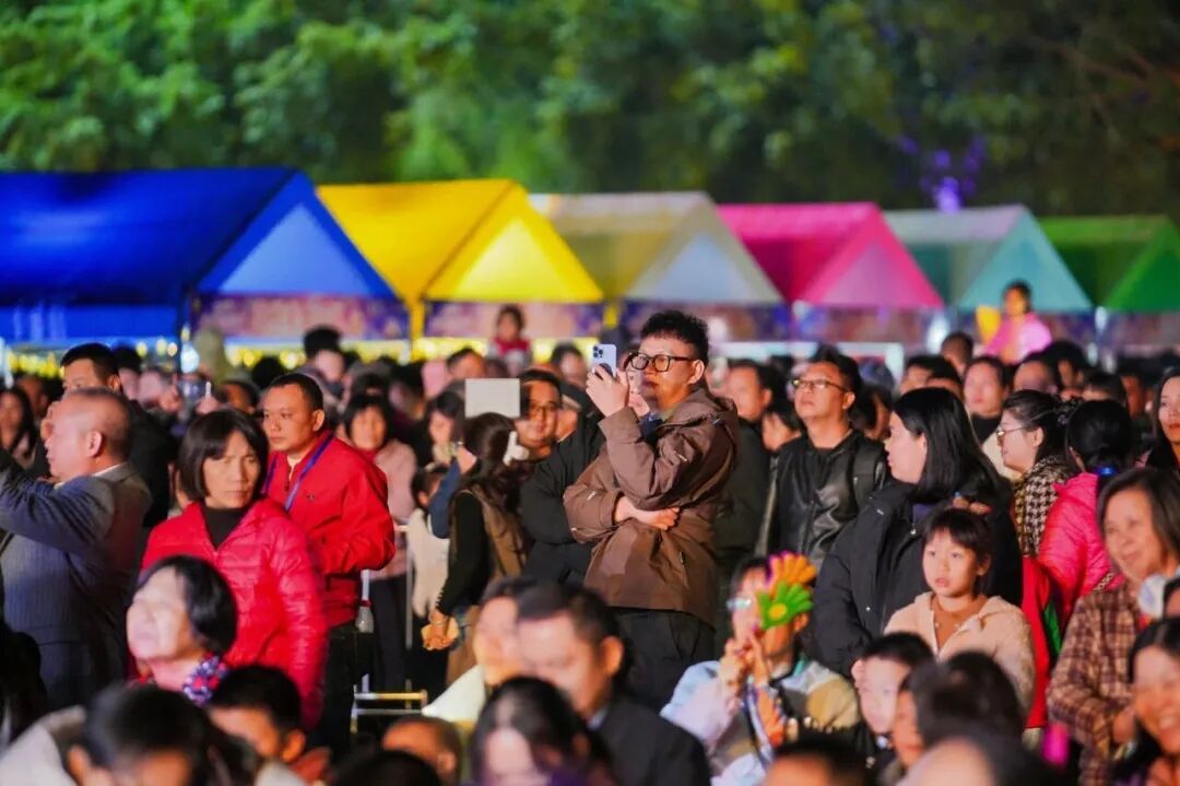 无人机表演更令人惊叹。1400多台无人机如精灵般腾空而起,交替展现金林陨石坑、德庆贡柑、龙母祖庙、德庆学宫、华表石等光影图案,营造出璀璨夺目的视觉奇观,现场气氛热烈,欢声笑语不断。