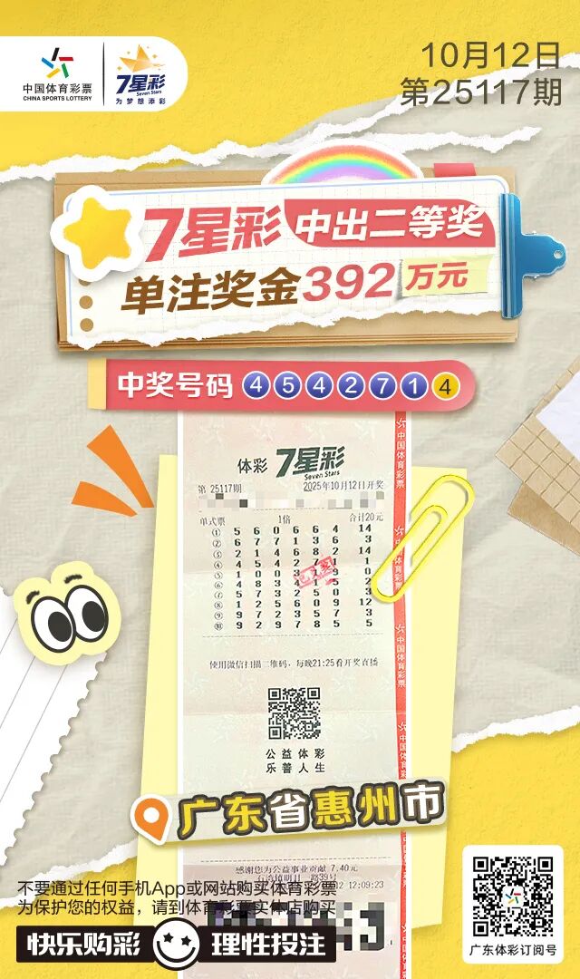 相继开出7星彩二等奖与顶呱刮大奖