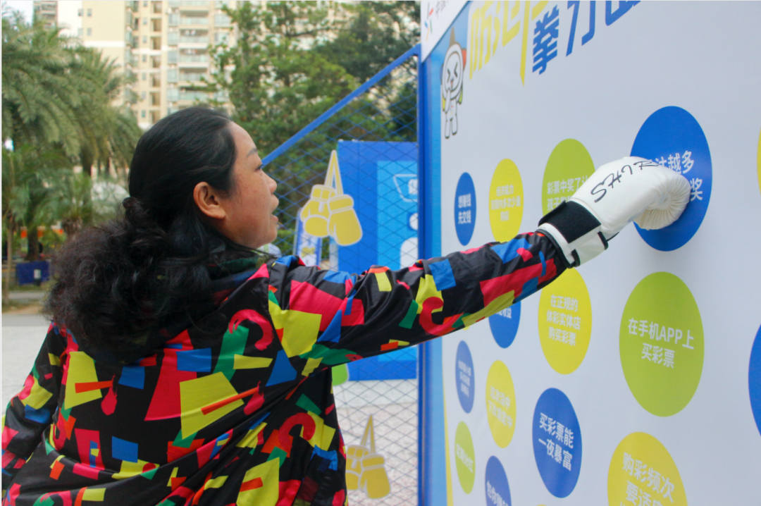 活动现场,两大反诈互动游戏成为“圈粉”焦点。其中,在“拳” 释新出彩游戏环节,市民通过挥拳击打靶墙上的涉彩反诈信息色块,在挥洒汗水的同时强化理性购彩认知;而在挑战“反诈视力表”环节前,大家瞪大双眼辨识反诈知识,将防范技巧牢记于心。