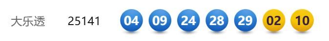 12月10日,超级大乐透第25141期开奖。前区开出号码04、09、24、28、29;后区开出号码02、10。本期全国销售2.93亿元,为国家筹集彩票公益金1.05亿元。
