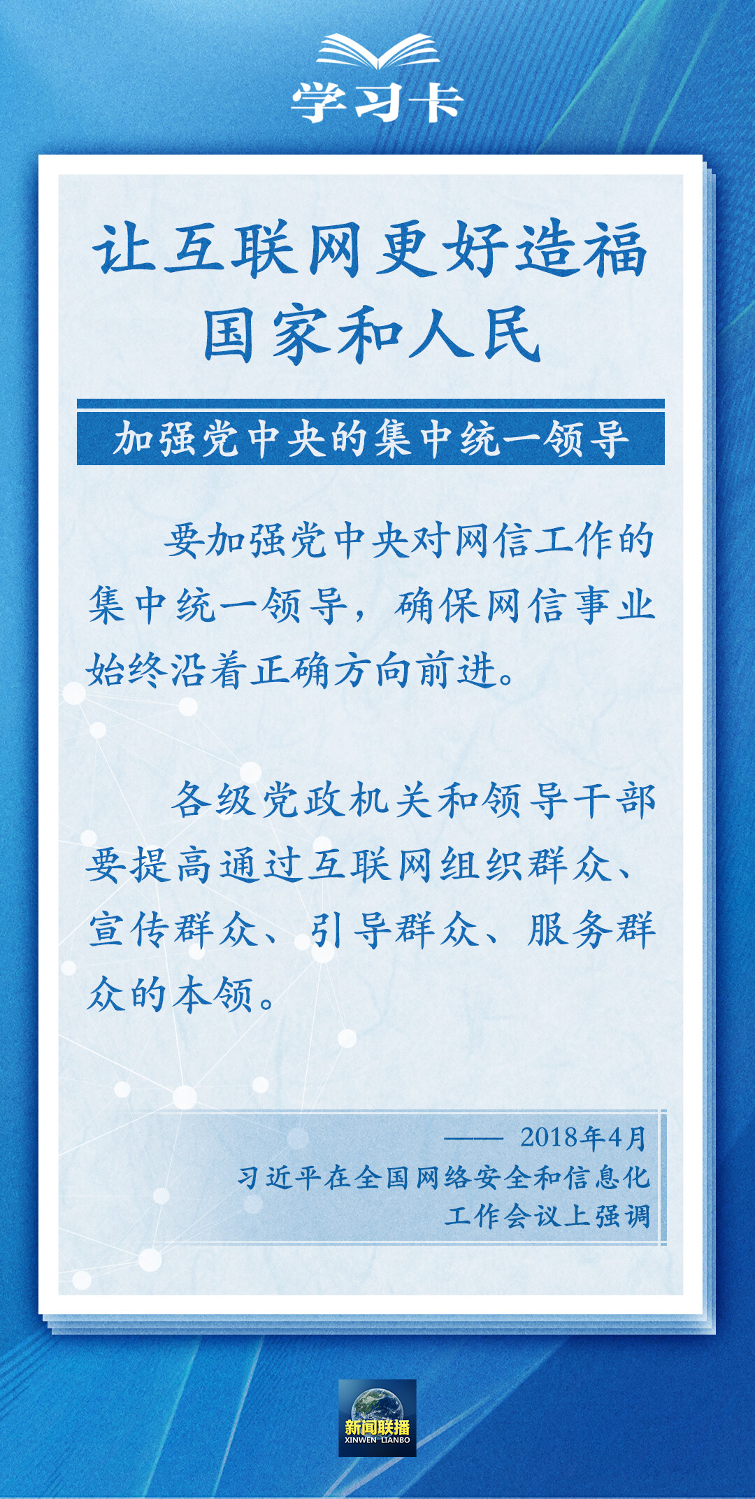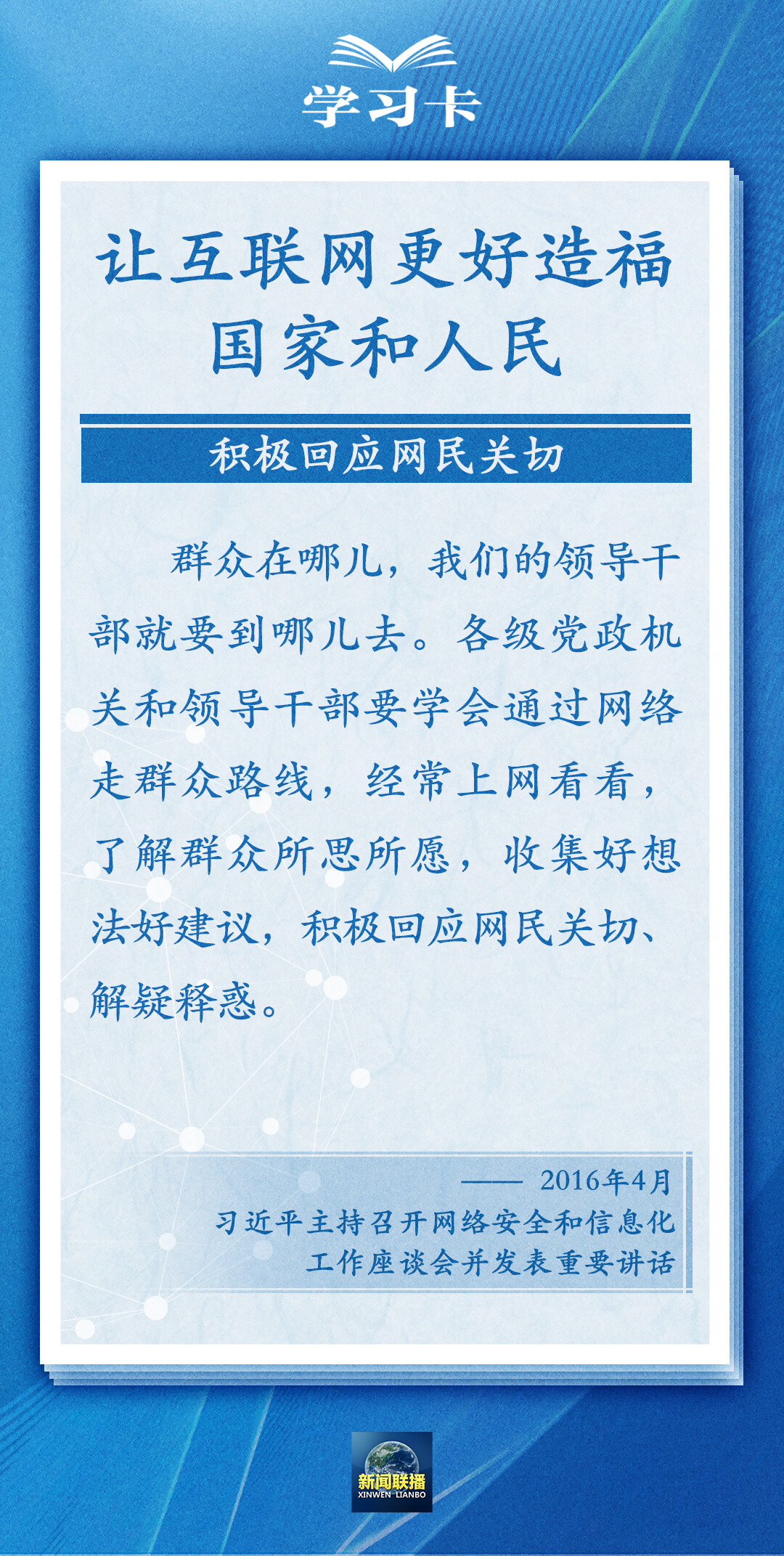 总书记多次指出,网信事业发展必须以人民为中心,适应人民期待和需求。如何让互联网更好造福人民?一起学习↓
