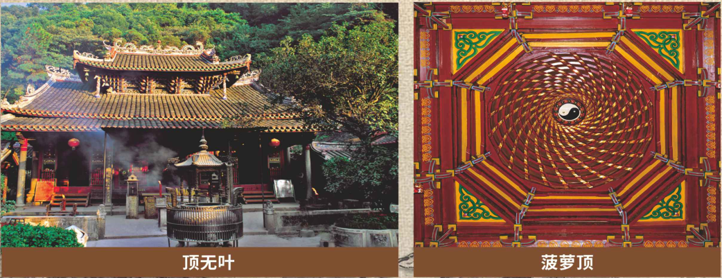 其二绝是寺里最壮观的大雄宝殿的菠萝顶。此藻井建于明朝(1385年),距今已有六百多年的历史,比北京天坛的方形藻井早了一百多年。在大雄宝殿内,殿内经常香烟鼎盛,却终年空气洁净,没有香烟熏人,传说是因为殿顶的藻井所起的作用。此藻井是藻井中的斗八藻井,是用1000多块精制的长方木料接嵌垒成的螺旋状藻井,因其螺旋状结构像菠萝,所以在梅州也俗称其为“菠萝顶”。