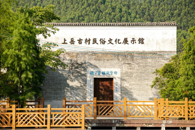 上岳古村位于佛冈县龙山镇西南部的潖江下游地域,省道252线与县道376线交汇地带。古村靠近民安圩,背靠岳山,依山傍水,山清水秀。古村的风水格局特点:左青龙、右白虎、前朱雀、后玄武,这种风水格局体现出生态和谐的特点。古村先后被评为广东省最美乡村、广东省古村落、中国历史文化名村、佛冈县文化旅游名村、广东省文物保护单位。