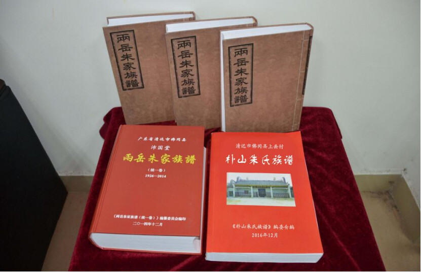 族谱文化是中华民族的传统文化,是承上启下的宗族历史。《两岳朱氏两岳族谱》由朱氏21世祖朱云章主持修编,民国14年(1925年)出版。记述时间跨度为宋代淳祐至民国14年,前后600多年。族谱分为上下册共计50多万字,并由清末榜眼朱汝珍作序。内容包括:序、弁言、目录、家训、乡规、世系图、世次纪、列传、行状、墓志、艺文、金石、建置、尝业、杂录共12卷。其中,“家训”卷收录“先贤文公家训”、“柏庐公治家格言”和“劝言四则”记载先贤朱熹、朱柏庐治家理学,传承孝悌、勤俭、读书、积德等儒学思想。该族谱从历史、内容、结构等方面,为之佛冈境内保存最完好的族谱,为研究佛冈和潖江地区经济、风俗、文化提供宝贵的历史材料。