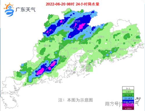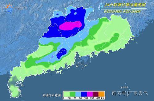 未来几天具体预报:20日,韶关、清远、河源、珠江三角洲北部和粤西的部分市县有暴雨,局部大暴雨,珠三角其余市县和云浮有大雨局部暴雨,其余市县有中雨,局部暴雨。