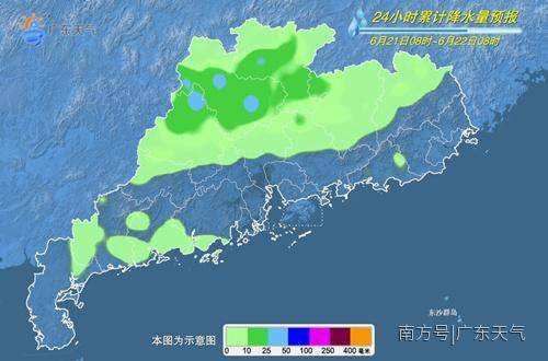 21日,韶关、清远、肇庆大雨局部暴雨转中雨,其余市县中雨转阵雨。