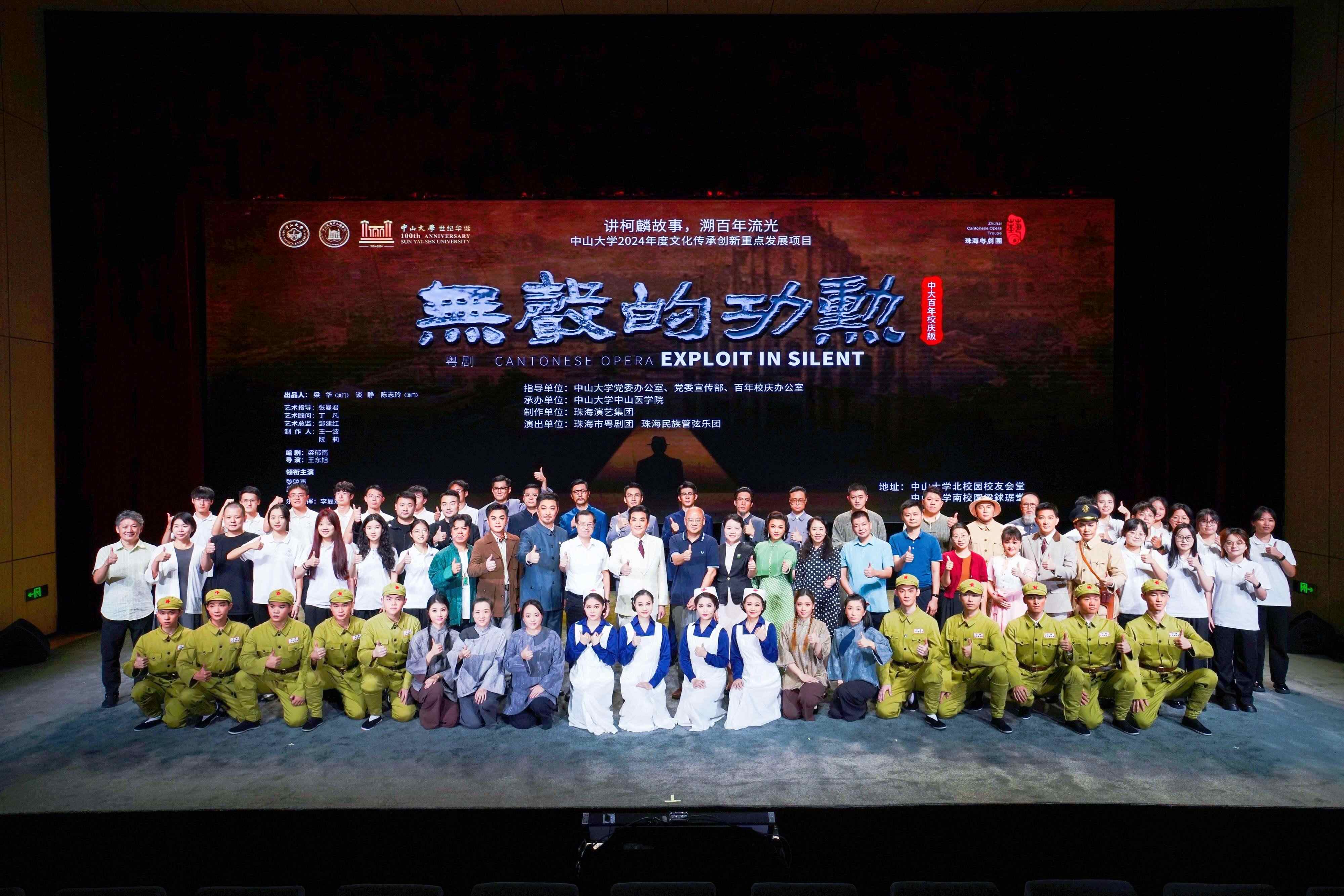 本次演出的粤剧《无声的功勋》(中大百年校庆版),是珠海市粤剧团应中山大学邀请创排的献礼版剧目,作为中山大学党委办公室主管的文化传承创新重点发展项目推出。