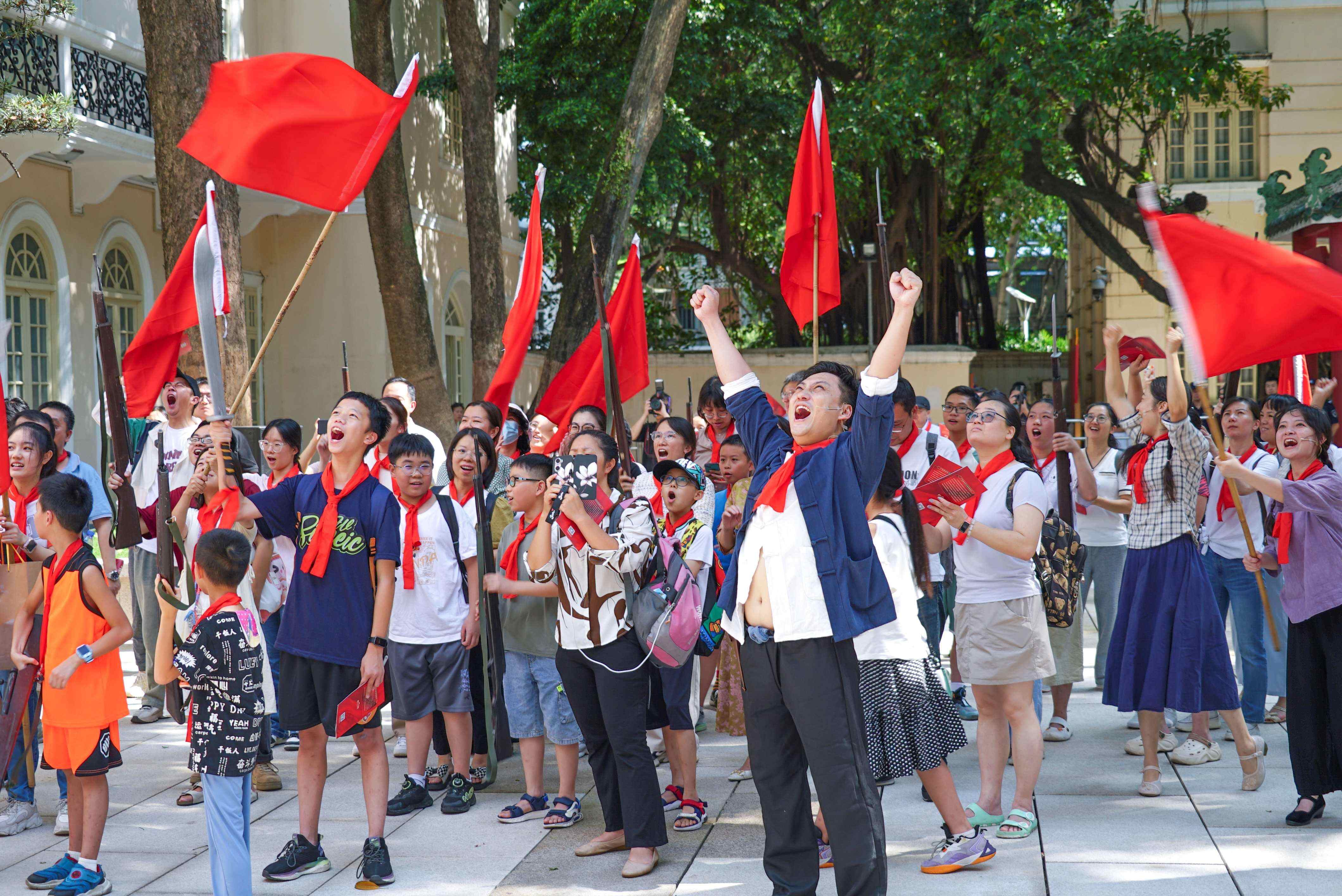 8月8日,广州起义主题沉浸式话剧《1927永远的红色》4.0版在广州起义纪念馆举行首次公演。该话剧是广东革命历史博物馆打造的博物馆行业领域首部原创沉浸式话剧,4.0版将计划在2024年演出20场。