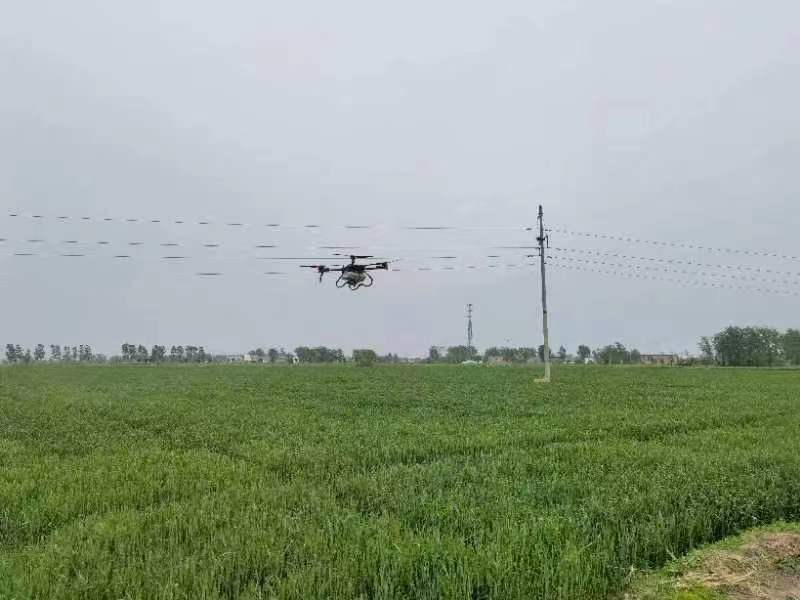 无人机在淮南市凤台县杨村镇的麦田防治赤霉病。采访对象供图