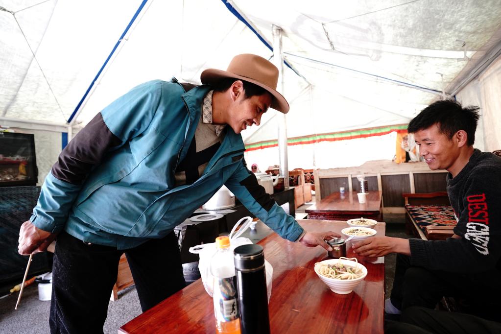 2020年,40岁的德吉曲珍一家从双湖县措折羌玛乡搬来后,在村里经营了一家茶馆。“开张以来,生意越来越好。茶馆生意忙不过来,前几天招了一名服务员,一个月开工资2000元。”她说。