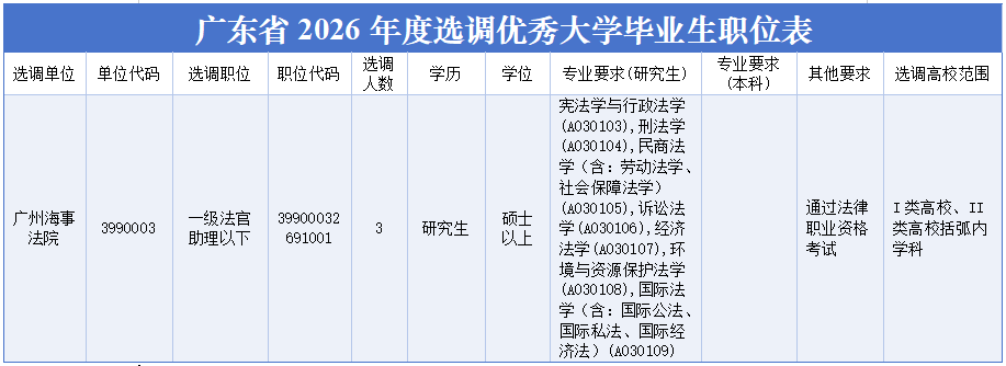 广东省2026年度选调优秀大学毕业生公告
