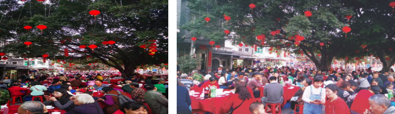 2011年,随着首届南湾水乡民俗旅游文化节举办,流水宴重现规模,达四千人同聚。近年来,宴席不再限于节庆,更成为社区团聚的载体。2020年新春前夕,南湾社区在十里河堤旁再摆千人宴,众多游子返乡共聚。佳肴满桌,觥筹交错,身着旗袍的南湾家嫂们也成为一道亮丽风景,笑语欢声中尽显水乡温情。